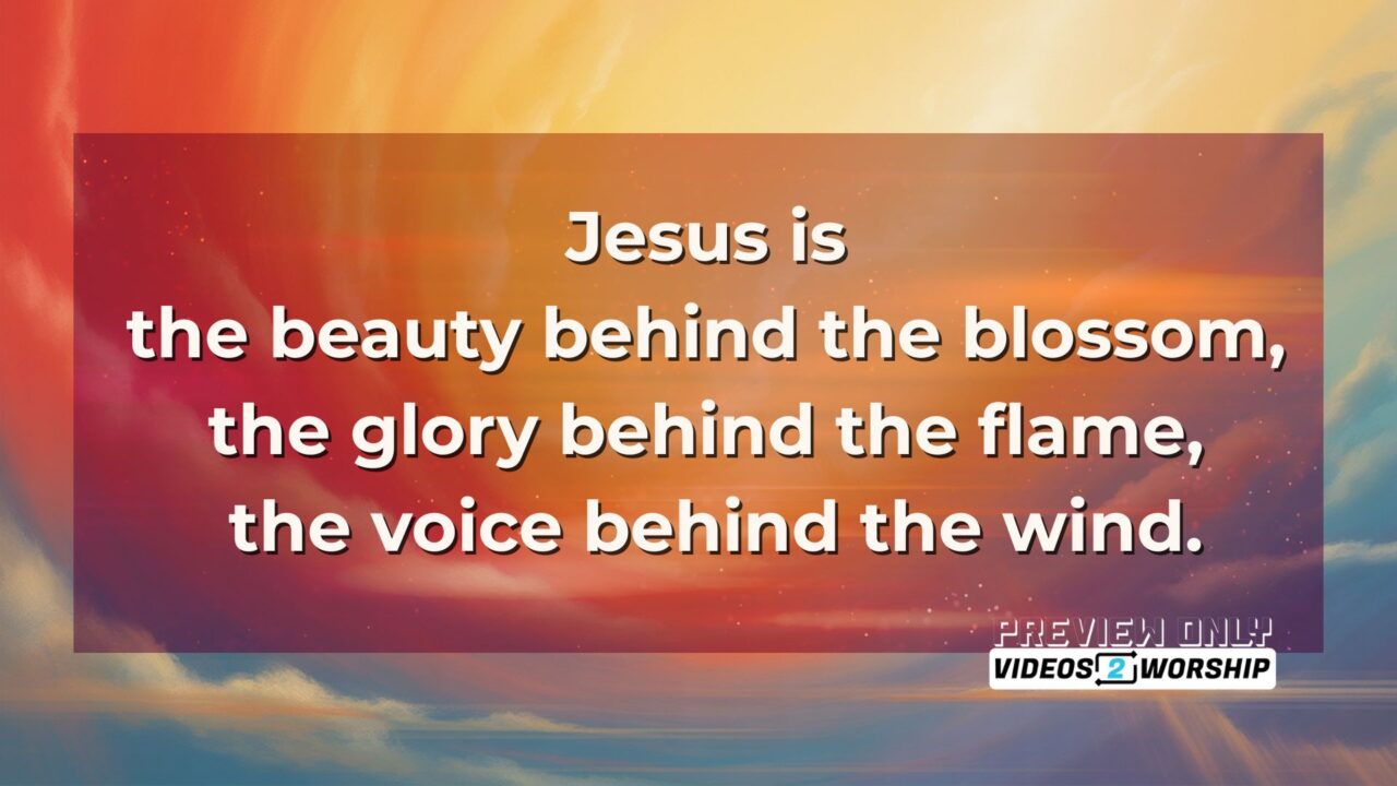 “Jesus is the beauty behind the blossom, the glory behind the flame, the voice behind the wind.”