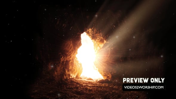 Easter Resurrection image backdrop featuring the open tomb. Enhance your Resurrection worship services with beautiful still backgrounds! Jesus Christ is risen just like He said! Celebrate the Lord’s resurrection with a heart filled with gratitude and joy. Available in HD only – 1920×1080. Free with paid membership!